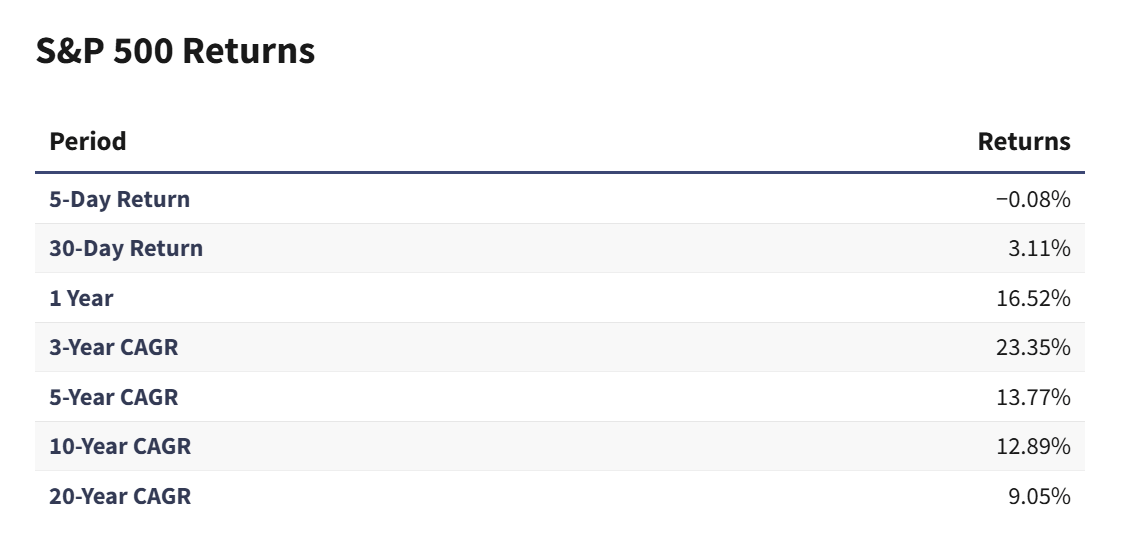 For example, S&P 500 index funds, which have historically averaged ~10% a year over long periods.