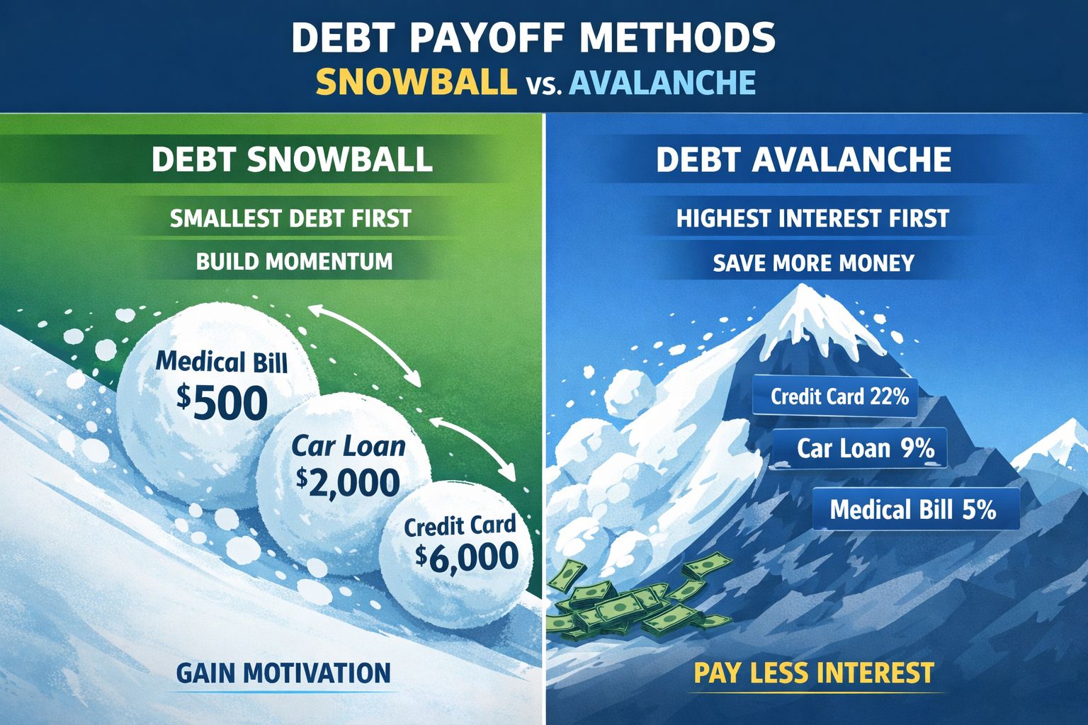 If you need early wins to stay consistent, go snowball. If you want to minimize what you pay overall, go avalanche.