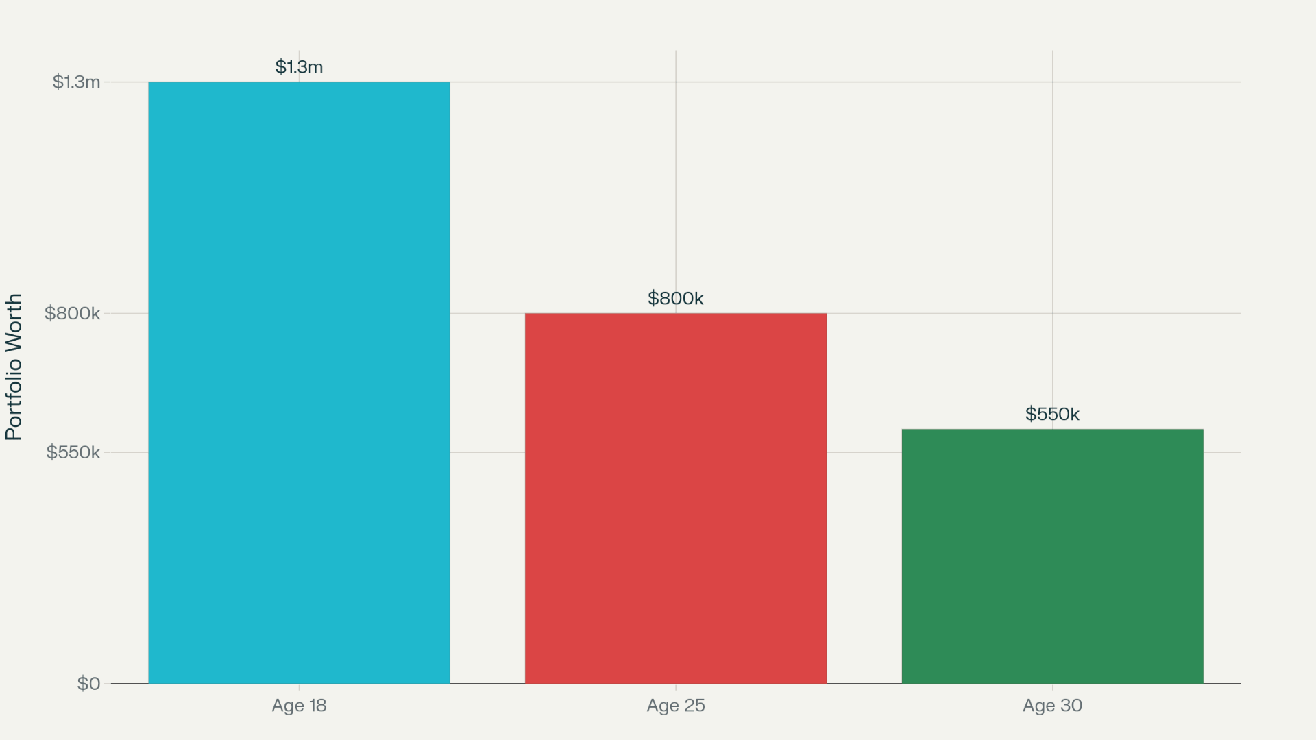 Wait until 25 to invest that same $250/month? You’ll have $800k at 60.