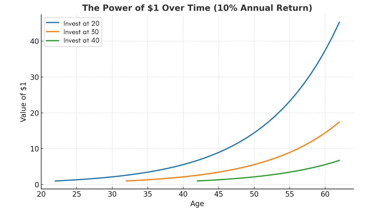 That’s why the first decade of investing is priceless. Every early dollar you put in gets 40 years of compounding behind it. Wait even just 10 years, and you won’t just lose “a bit” of growth—you’ll cut your potential in half.
