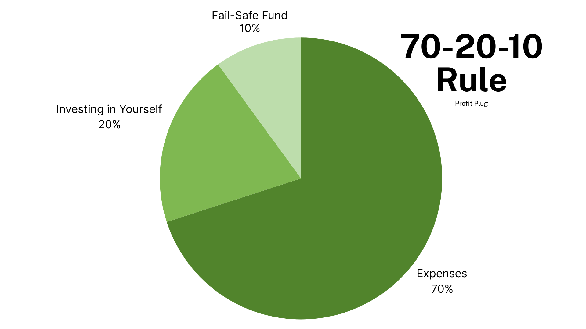70% of your income at most should go toward expenses, like housing, food, and fun activities.
